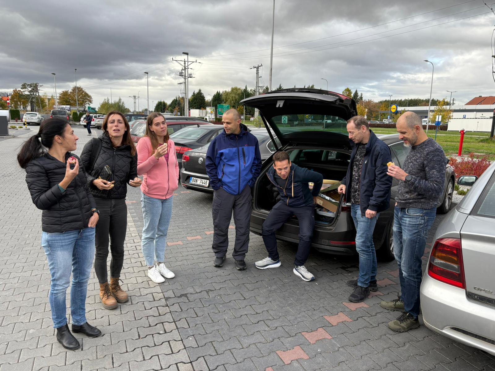 V pátek 24. října po poledni vyráží osmičlenná skupinka dvěma auty směr Polsko a dál do „Reichu“. V našem oddíle nemáme jen skvělé běžce, ale i neskutečně šikovné cukrářky a ultrajedlíky. Cesta tak byla zpestřena několika zastávkami s přepadovkami kufru auta č. 2, kde se ukrývala sladká sacharidová bomba. Jenže místo aby se s ní zacházelo jako s pyrotechnikou, skočili jsme po ní jak piraně 😊.